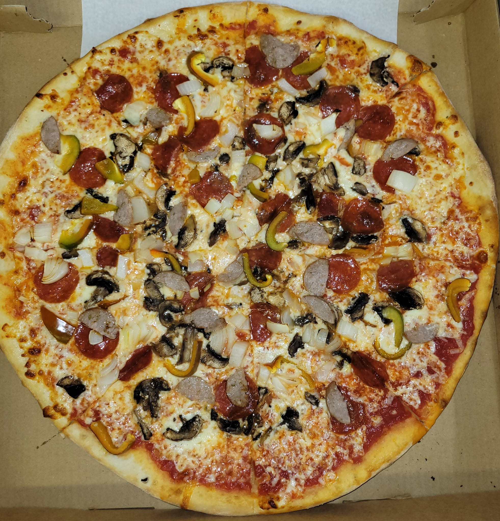 I just ordered 15 pizzas for a company party and everyone loved the pizza and asked where I got it from. Whoever I ordered from on the phone was very nice and accommodating after I had to change things a couple times. Great people over there and they serve great pizza, I highly recommend to anyone!